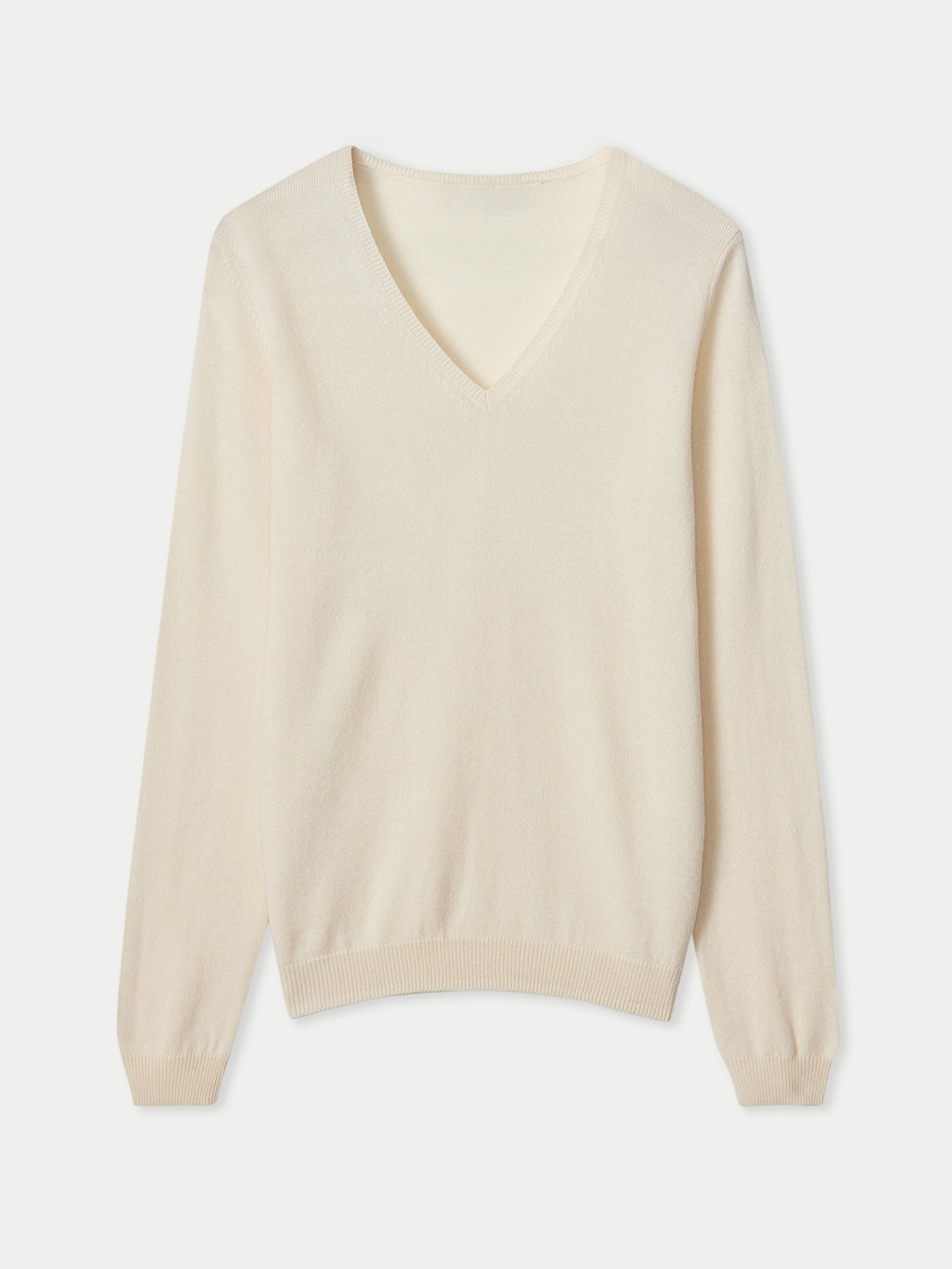Essential women's cashmere V-neck jumper with a timeless design and enduring quality. Spun from the softest Mongolian cashmere fibres, it features a flattering waistline and versatile fit—lightweight yet warm, ideal for layering or wearing on its own with effortless elegance.