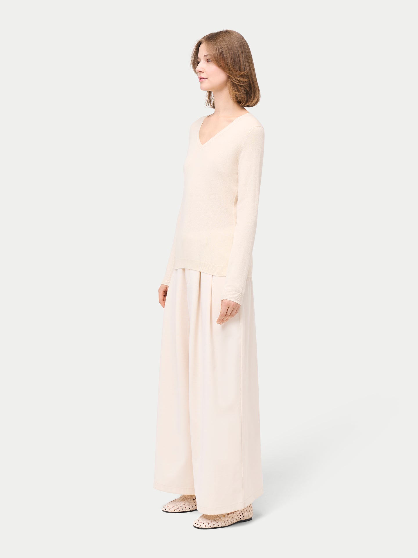 Women’s V-Neck Cashmere Sweater Off-White | GOBI UK