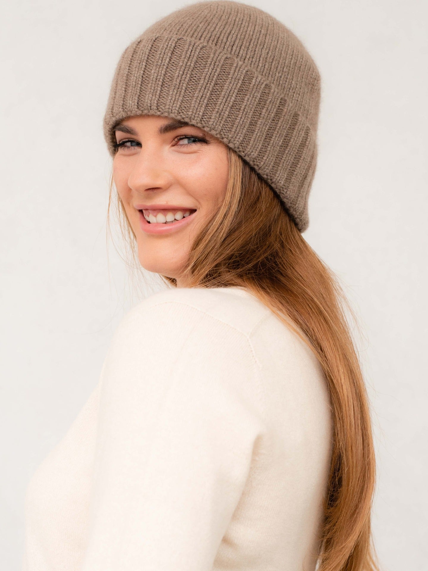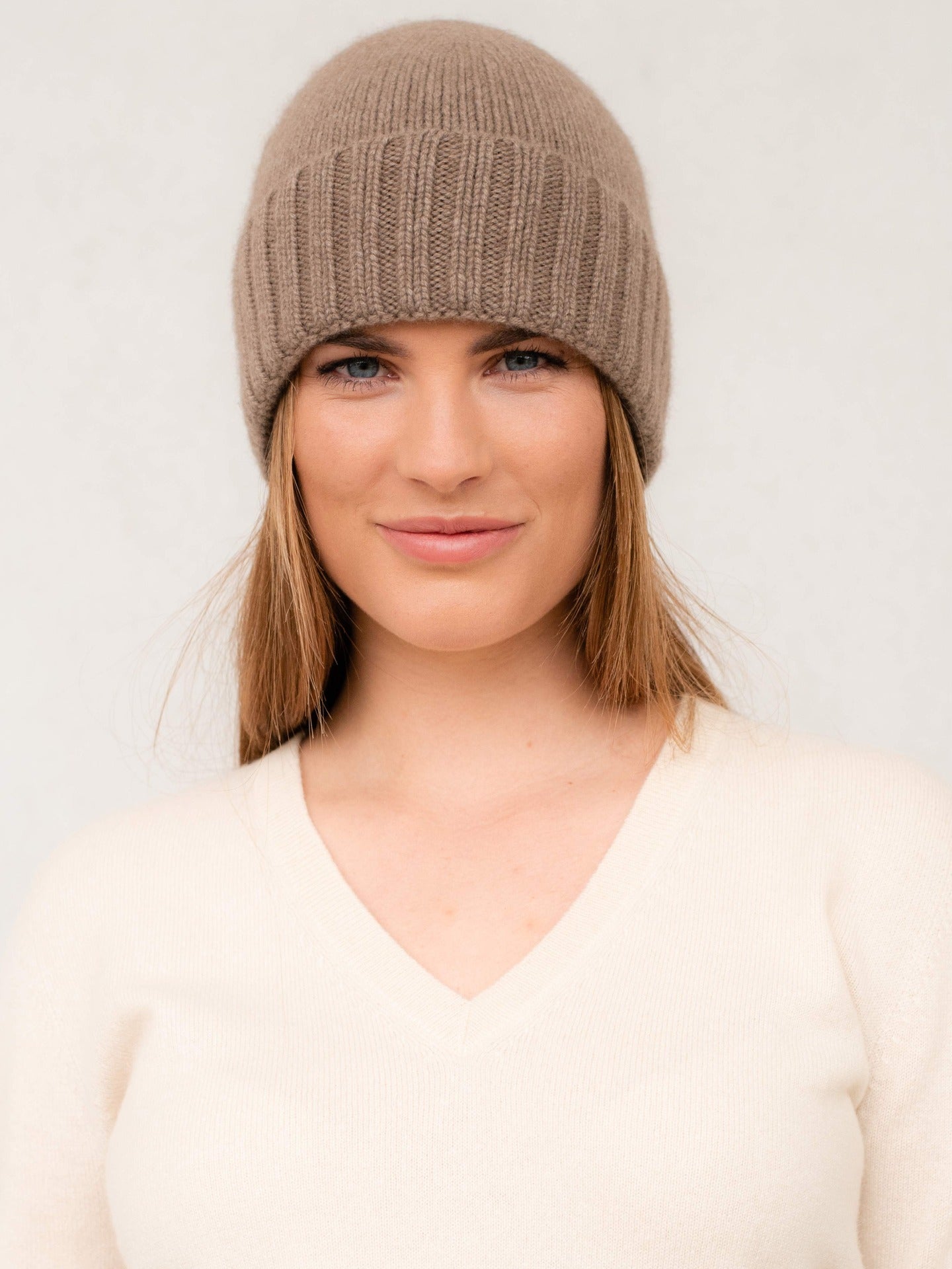 Unisex Cashmere Rib Knit Hat Taupe - Gobi Cashmere