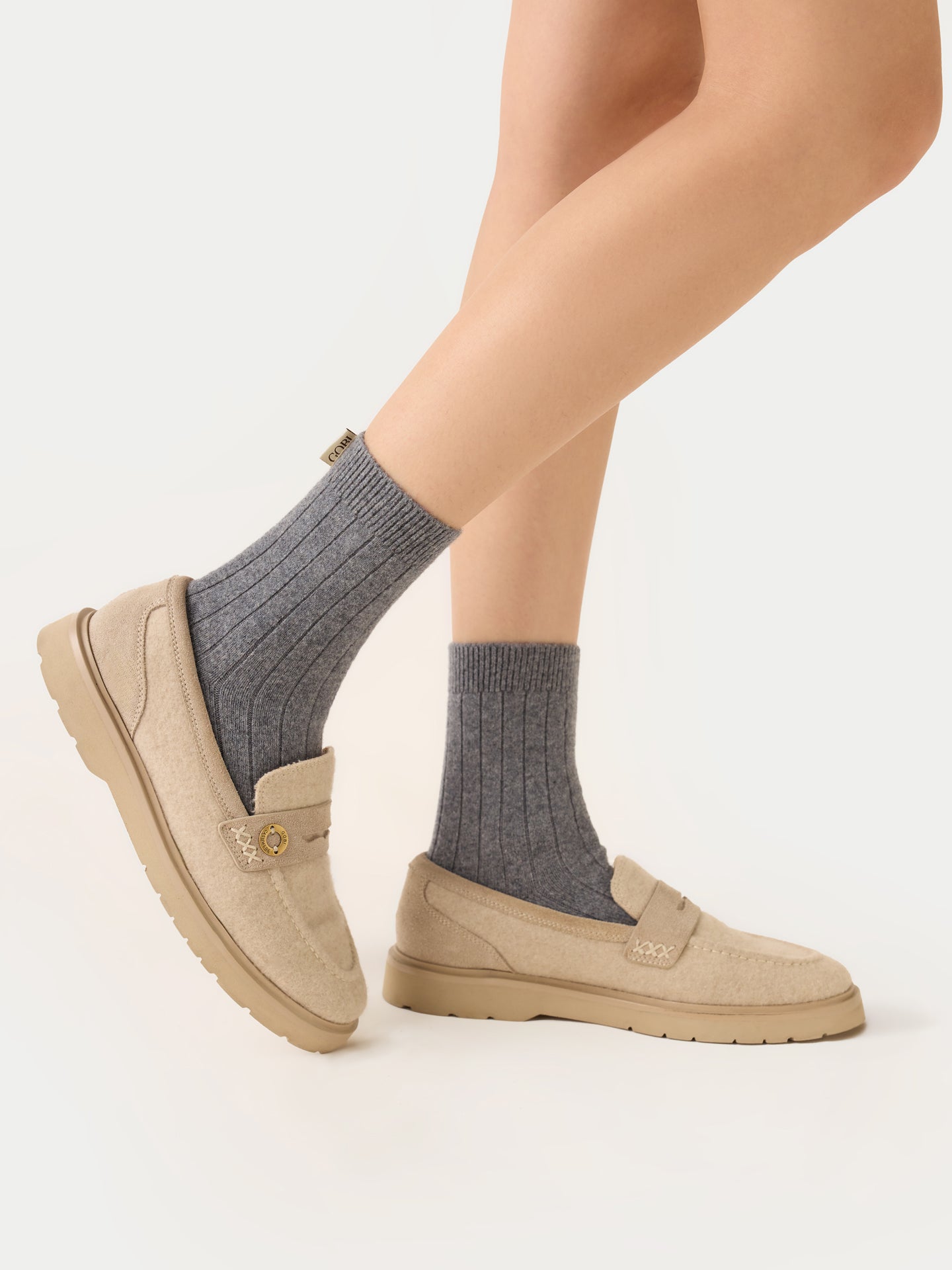 100% Premium Mongolian Cashmere | Locally made in Mongolia Made from an indulgently soft Mongolian cashmere, these socks are exquisitely soft and a real treat for your feet. Its extreme warmth, yet its delicate softness against the skin. Cashmere socks should not be worn with shoes, boots or trainers as the delicate fibres of Cashmere may be damaged by friction. *Product colour may vary due to lighting. Please refer to the simple studio shots for the most accurate colour